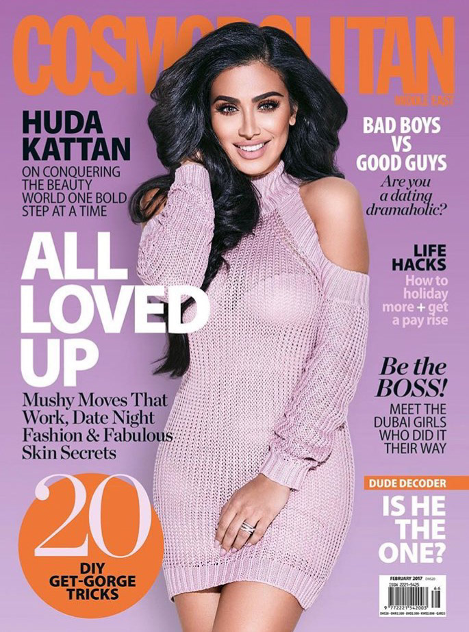 The cover as well as some alternatives we edited for the feb-issue of Cosmopolitan Middle-East staring Beauty-Blogger Huda Kattan. Photo: Adam Hill